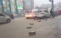 탑정호 상류 지역인 논산시 양촌읍 신흥리는 전북 완주군에서 쏟아져 들어오는 물로 인해 일부 제방이 붕괴되었습니다. 이로 인해 오전 7시 현재 도로에 물이 계속 차오르고 있습니다.