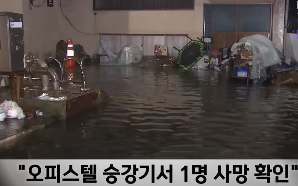 구조대가 도착했을 때는 이미 해당 건물 지하 2층 천정까지 침수된 상태라서 바로 진입이 어려웠습니다. 4시쯤 승강기 문을 개방했을 때는 이미 남성 1명이 숨진채 발견이 되었습니다.