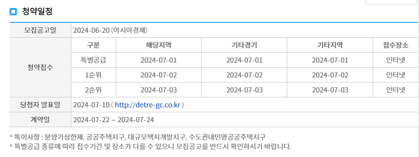 과천과 동일하게 특공은 7월 1일, 1순위는 7월 2일입니다.